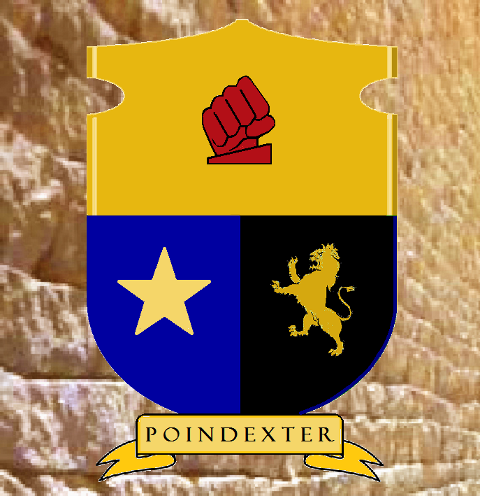 The Heraldric Meaning of the Poindexter Family Ceremonial Crest 'Heraldry' is a centuries-old code for symbols and colors on European family crests. Though our branch of the Poindexter family is Afro-American, and our ceremonial crest, first displayed in the funeral of our beloved Robert Eugene Poindexter (2018), is not registered with any heraldric organizations in Europe, we have researched how our crest fits the code ..and found that it fits, exceptionally well. Could this be the new Poindexter family crest? LION in field of BLACK This symbolizes steadiness and persistence (BLACK), through courage (LION). It is a testament that the indomitable will of our ancestors to survive unimaginable hardships, like war and slavery in America, have sprung from our unwavering courage and the inspiration to aspire to more. STAR in field of BLUE This symbolizes strength and determination (BLUE), through God's grace (STAR). It is a testament that our family's strength and will to survive and succeed have been and continue to be blessings from God, ..and that we should be grateful for them, always. UPRAISED, GAUNTLETED RED FISTS on a GOLD BANNER The banner symbolizes that our ancestors were LEADERS of men, and the gold symbolizes that they possessed great knowledge and WISDOM. The name Poindexter means 'right fist', and the upraised, right hand, in a RED gauntlet is the mark of a knight. All together, it is a testament we live and lead, with the understanding of what is represented below, in blue and black - that we have ancestors and elders, who have sacrificed for us, and a God, who continues to bless us. It also represents the deeper meaning of our family name..."Spur the steed!"